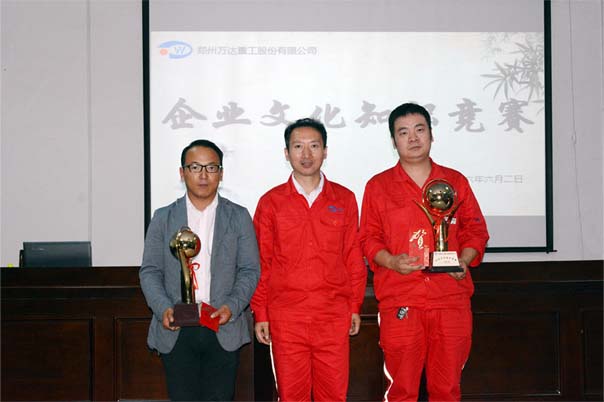 本次企業(yè)文化知識(shí)競(jìng)賽共持續(xù)三個(gè)半小時(shí),由控股公司友聯(lián)智能、子公司萬(wàn)達(dá)科技、萬(wàn)達(dá)邁克及總公司萬(wàn)達(dá)重工的14個(gè)部門共同組成的15支代表隊(duì)伍共66人參加了比賽。比賽評(píng)委由公司董事長(zhǎng)、書記何清、工會(huì)主席于江山、總工袁希海、人力資源部經(jīng)理趙書麗擔(dān)任,過(guò)程精彩、激烈,觀眾熱情高漲,各選手互相配合,團(tuán)結(jié)協(xié)作。最終在“公開(kāi),公正,公平”的原則下,經(jīng)過(guò)初露鋒芒、心有靈犀、當(dāng)機(jī)立斷、精誠(chéng)合作四輪的角逐產(chǎn)生優(yōu)勝獎(jiǎng)團(tuán)隊(duì):行政管理部代表隊(duì)榮獲一等獎(jiǎng),萬(wàn)達(dá)邁科、生產(chǎn)管理部一隊(duì)獲得二等獎(jiǎng),物流服務(wù)中心、知識(shí)體系二期聯(lián)合部及質(zhì)量管理部榮獲三等獎(jiǎng)。