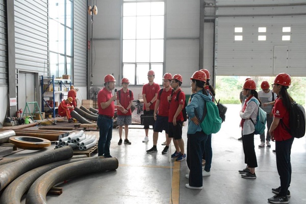 北大學(xué)生黨員“圓夢(mèng)先鋒”鴻雁計(jì)劃一行先后深入堆焊生產(chǎn)車間進(jìn)行了參觀,薛總就公司復(fù)合堆焊設(shè)備和技術(shù)、管件生產(chǎn)設(shè)備和技術(shù)向?qū)W生們進(jìn)行了詳細(xì)講解。隨后,北大學(xué)生黨員參觀了萬達(dá)重工二樓黨員活動(dòng)室、黨群活動(dòng)紅色長廊、運(yùn)動(dòng)健身室等一千多平方米的黨群基地。于副書記向參觀組一行簡(jiǎn)要介紹了萬達(dá)重工黨建基地建設(shè)情況。