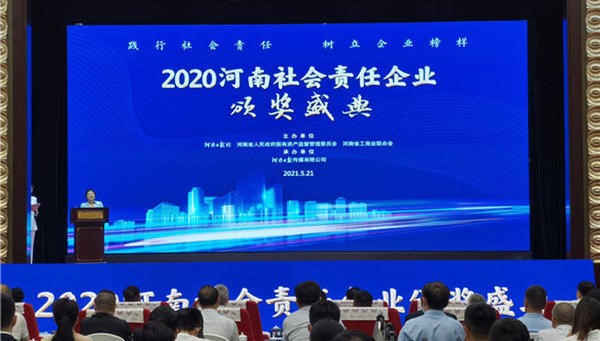 2021年5月21日下午,由河南日報社、河南省國資委、河南省工商業(yè)聯(lián)合會聯(lián)合主辦,河南日報傳媒有限公司承辦的“2020河南社會責(zé)任企業(yè)推選活動頒獎典禮”在鄭州黃河迎賓館隆重舉行。