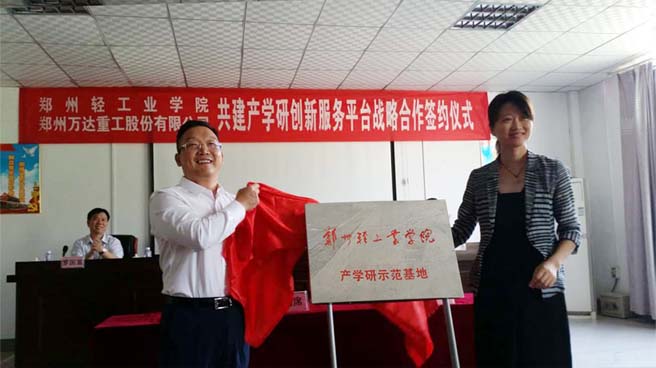 鄭州萬達(dá)重工股份有限公司----鄭州輕工業(yè)學(xué)院 共建產(chǎn)學(xué)研創(chuàng)新服務(wù)平臺(tái)戰(zhàn)略合作簽約揭牌儀式