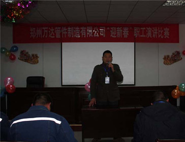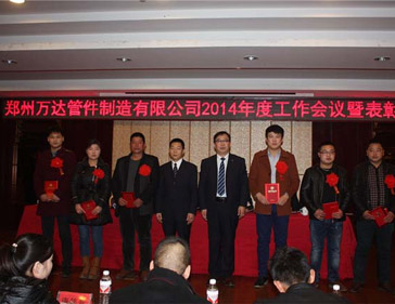 2016/01/28 512 鄭州萬達管件制造有限公司2014年年會于2015年1月20日隆重召開。會議首先表彰了公司2014年度先進工作者、先進部門及班組、優(yōu)秀干部、年度進步之星、銷售冠軍、優(yōu)秀黨員等十余個獎項,并對獲獎?wù)哳C發(fā)了獎金和證書。公司董事長、黨委書記何清同志在會議上做了題為《適應(yīng)新常態(tài) 開創(chuàng)新局面 實現(xiàn)公司持續(xù)健康穩(wěn)定發(fā)展 》的報告,總...