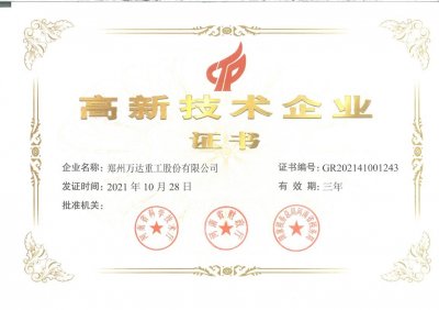 熱烈祝賀鄭州萬(wàn)達(dá)重工股份有限公司順利通過(guò)“高新技術(shù)企業(yè)”認(rèn)定